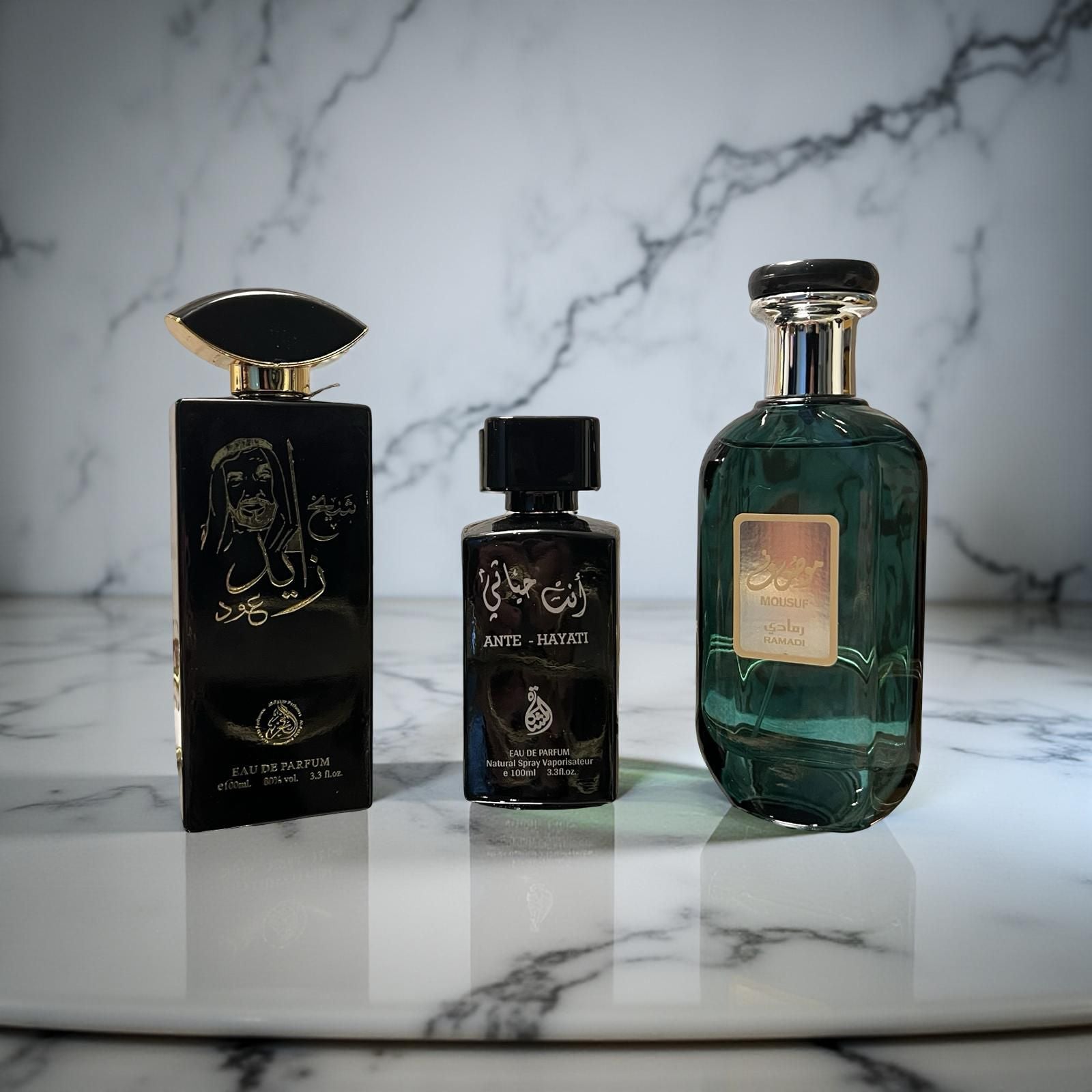 SET 3 PARFUMURI ORIENTALE PENTRU BARBATI (SHEIKH ZAYED-ANTE HAYATI-MOUSUF)