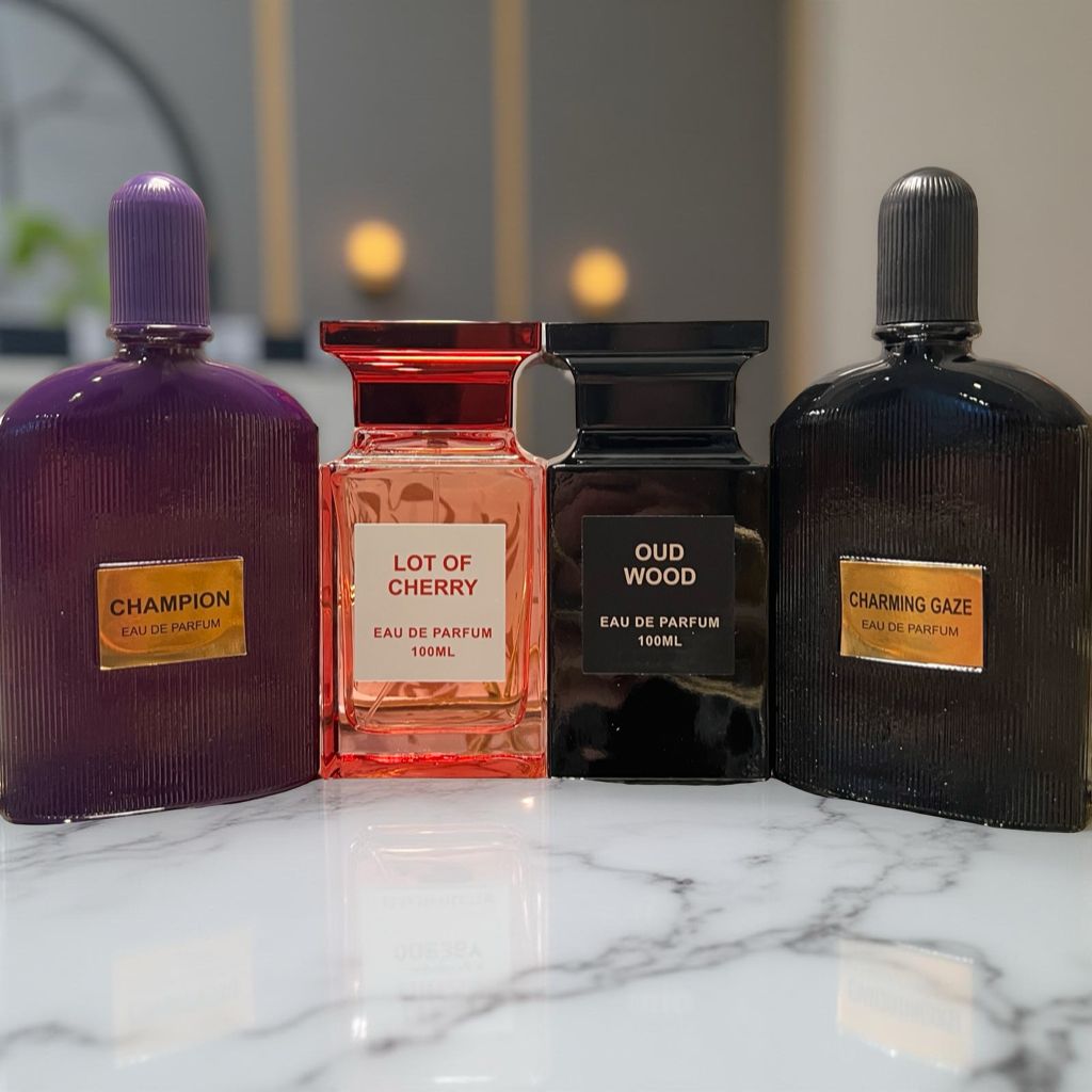 SET 4 PARFUMURI PENTRU EL SI EA (CHAMPION-LOT OF CHERRY-OUD WOOD-CHARMING GAZE)